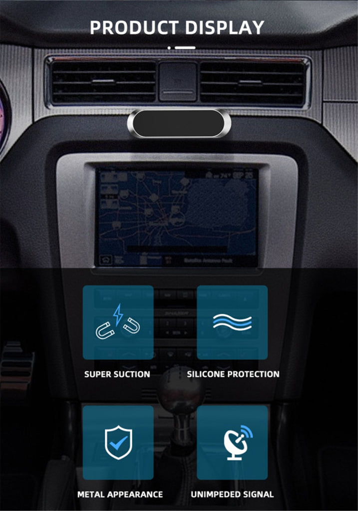 - It ensures you and your phone a safe and smooth trip. Strong Zinc Alloy frame, silicone surface with magnets underneath producing an intensive force of attraction that will hold any smartphone or mini-tablet.