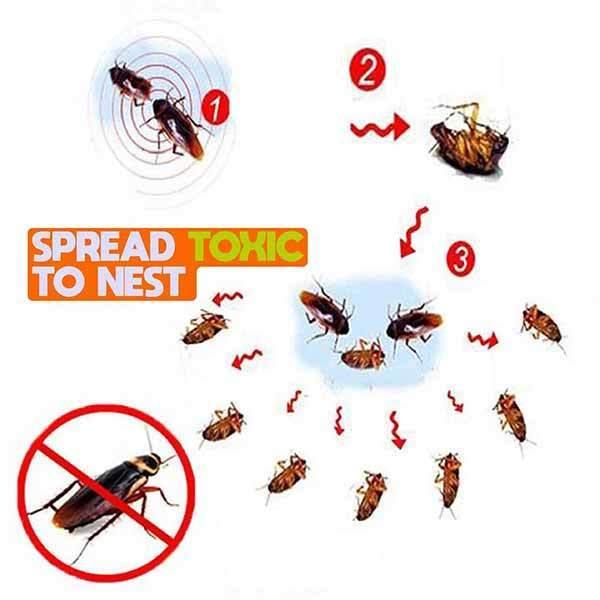 - Eliminates ALL cockroaches in the nest first time round, and they will never return.