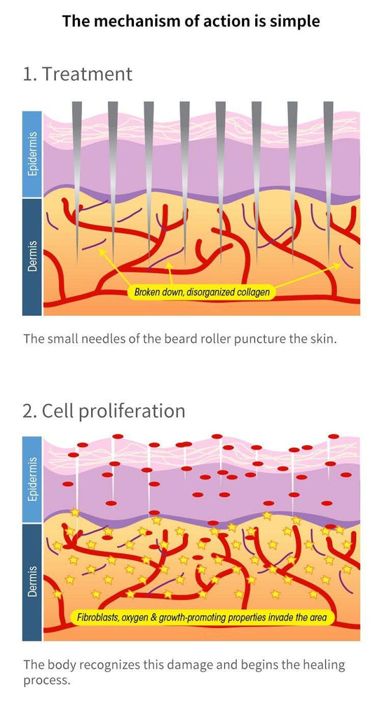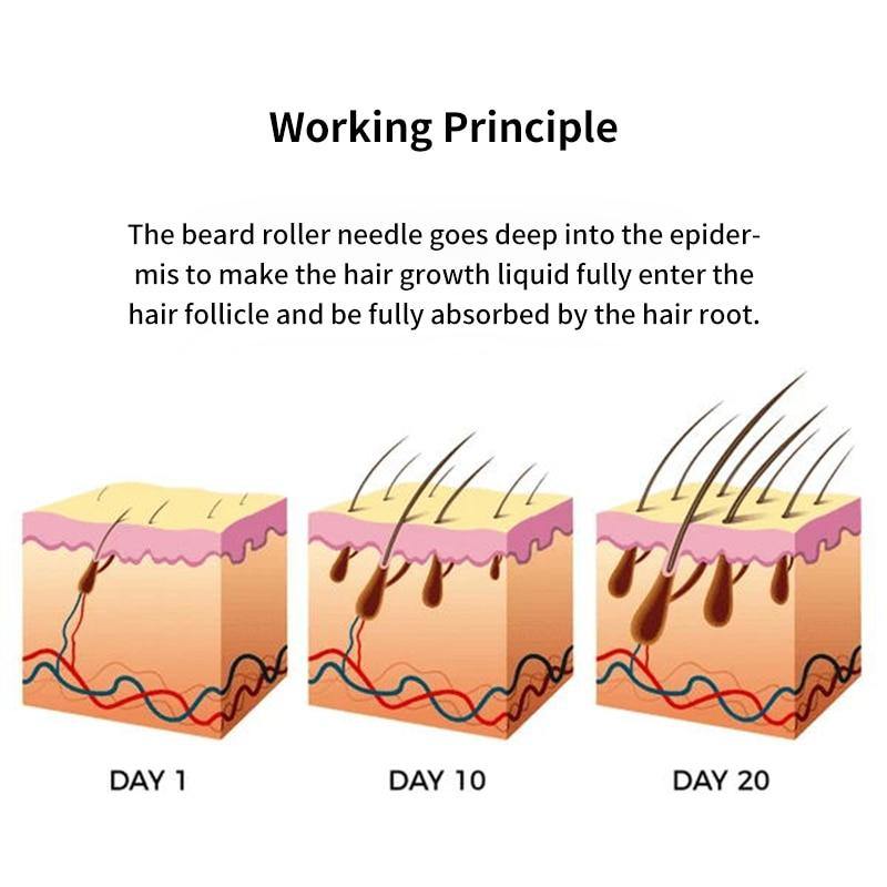 The Beard Roller increases blood circulation, stimulates sleeping follicles, and maximizes serum absorption.