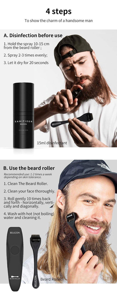 The use is simple but requires some precautions. It is important to clean your beard and skin before use and to disinfect your Roller before and after.