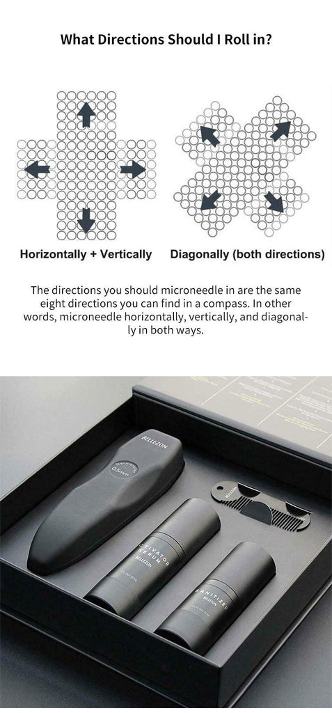 - Roll the Roller on your skin and beard 10 times horizontally and vertically with light pressure
