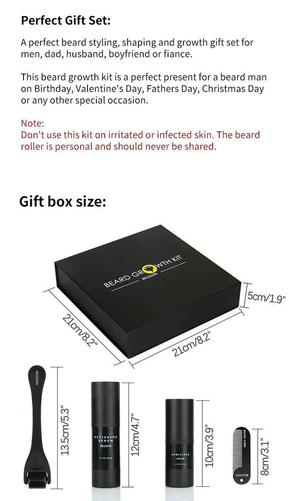 ✎ Our beard growth kit for men packed in a luxury gift box includes beard roller + beard activator serum + beard roller washing + beard comb, is a perfect gift for men/father/husband/him
